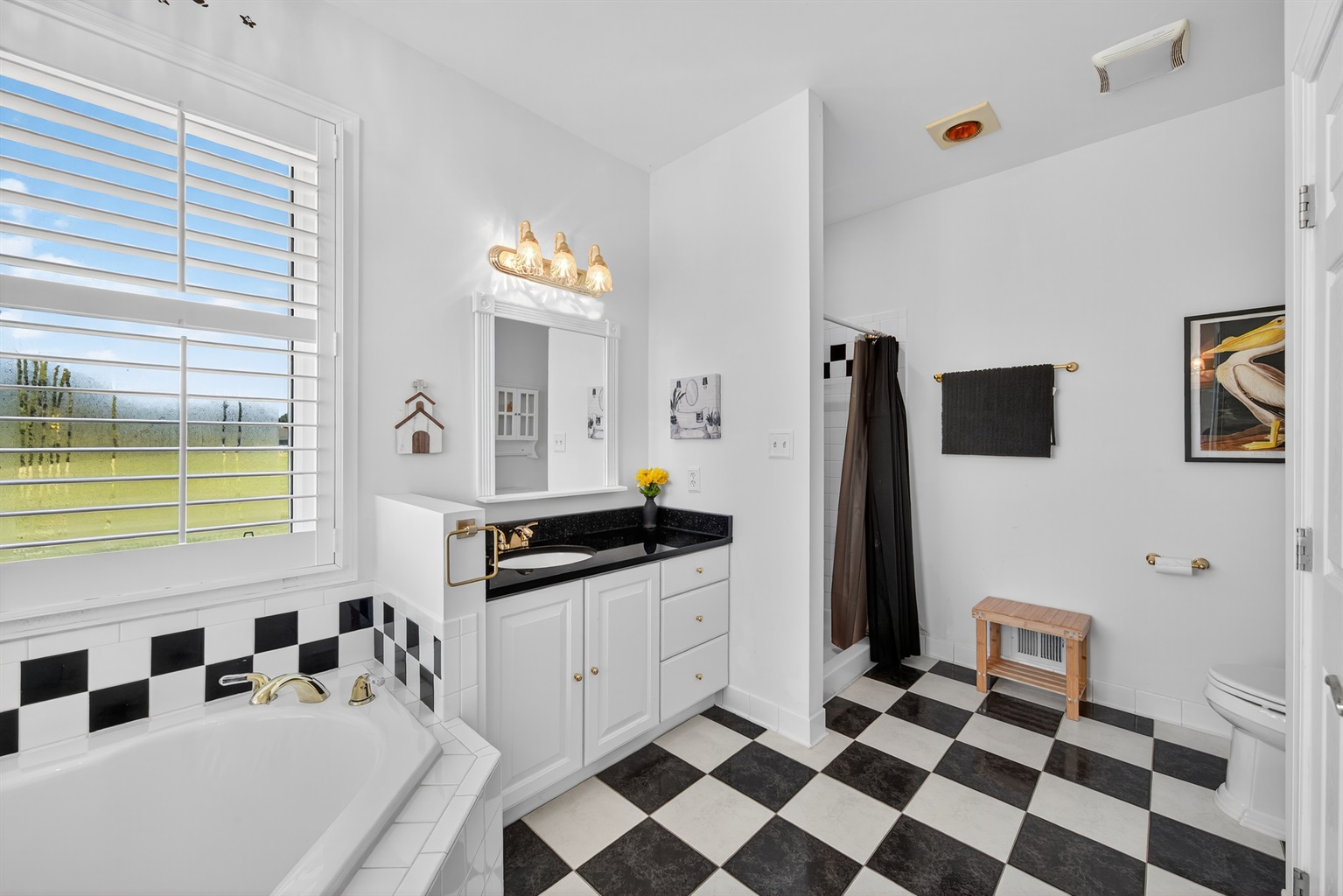 Relaxation: Master suite with jetted standalone tub, open lounge spaces, sunroom